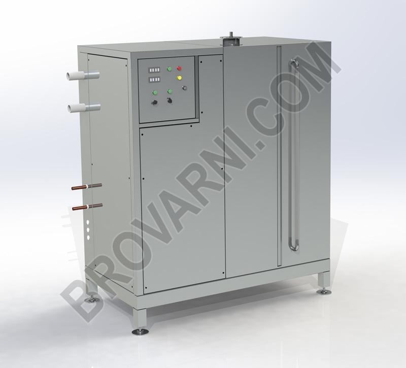 The refrigeration station is designed for cooling beer in fermentation tanks and water in a cold water tank.